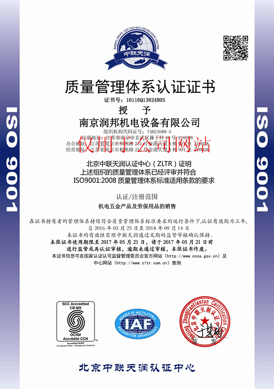 2016年5月25日,我公司再次順利通過(guò)ISO9001質(zhì)量管理體系認(rèn)證,以下是認(rèn)證證書(shū):