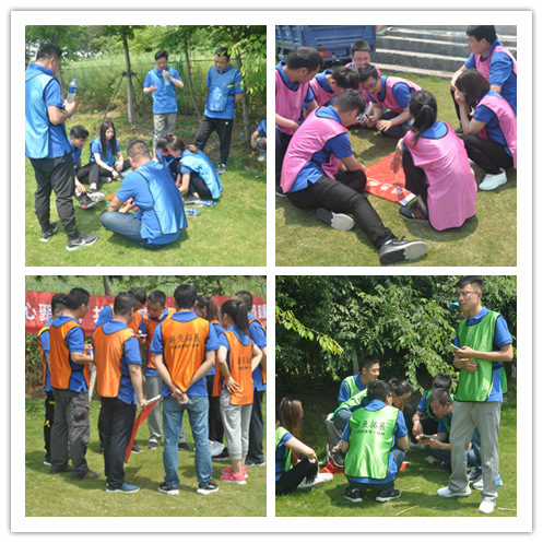 活動首先由歡快的“好、很好、非常好、耶”破冰活動拉開序幕,大家迅速的融入團隊,建立信任。緊接著在拓展教練的指導(dǎo)下大家被分成了四組,各組確定隊長后經(jīng)過一番頭腦風(fēng)暴,設(shè)計好隊名、LOGO、口號、對歌及隊形并逐一精彩亮相。