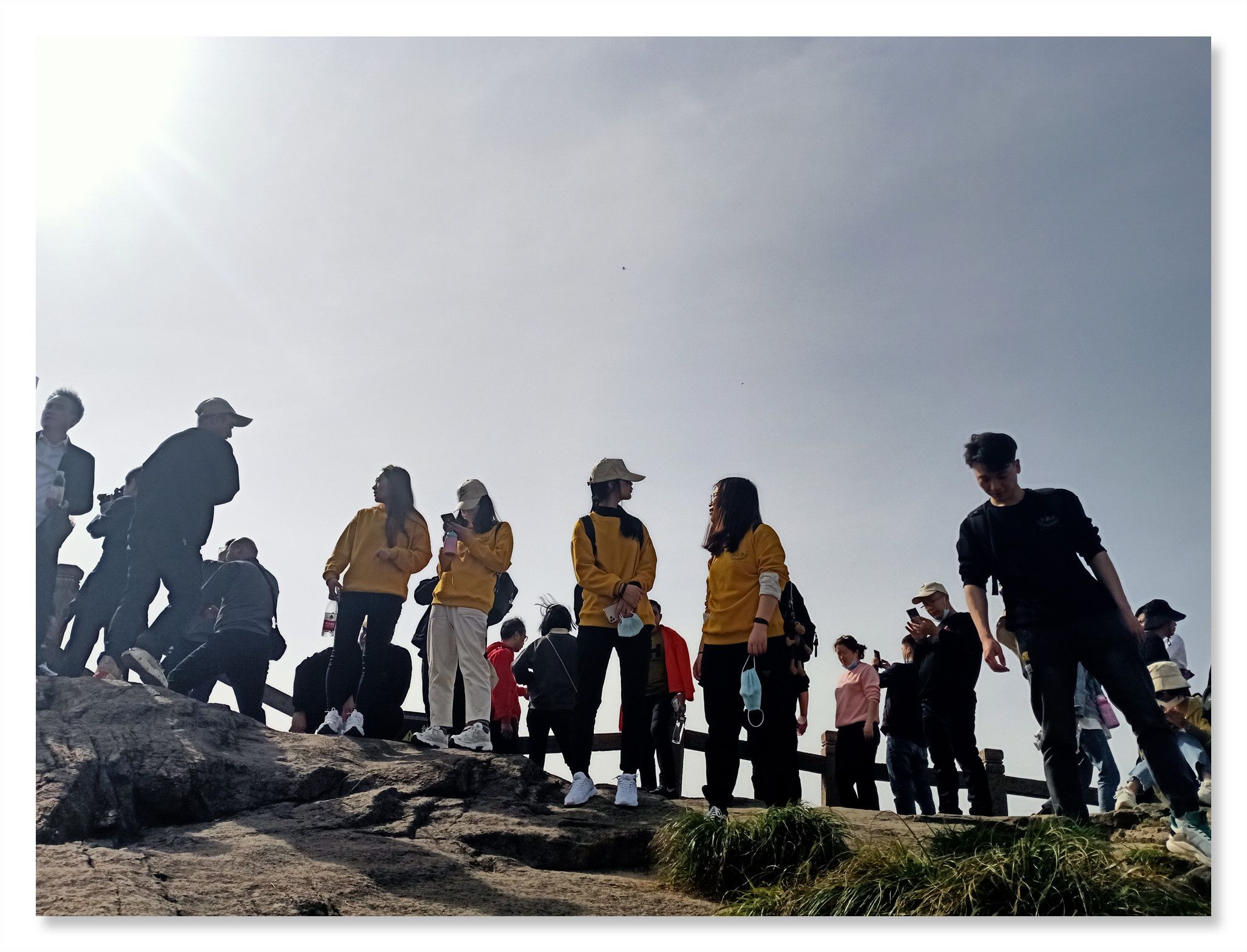 行程第一天,大家在導(dǎo)游的帶領(lǐng)下游覽了花臺(tái)景區(qū)。景區(qū)內(nèi)風(fēng)光壯美,景色綺麗,以奇峰怪石、云海霧凇、花的海洋而著稱,素有“靈山九華,美在花臺(tái)”的說法。景區(qū)內(nèi)有我國(guó)品種集中的稀有高山杜鵑花,紅、黃、白、紫等爭(zhēng)相綻放,爭(zhēng)奇斗艷,鑲嵌在山野絕壁中,宛若“天街花市”,儼然一副華美的山水畫。然而山上這個(gè)時(shí)節(jié)的杜鵑花仍是花骨朵兒,大家并未得觀百花爭(zhēng)艷的絕美景色。不過山上奇特的地質(zhì)地貌,神奇地構(gòu)成了九華山著名的“天然睡佛”奇觀。大家圍繞睡佛時(shí)而奮力攀登、時(shí)而漫步臨山棧道。登臨花臺(tái)頂,一覽九華全景,更可以“親近睡佛,聆聽佛音”,與神奇的“睡佛”零距離接觸,得大佛護(hù)持、倍感靈氣。